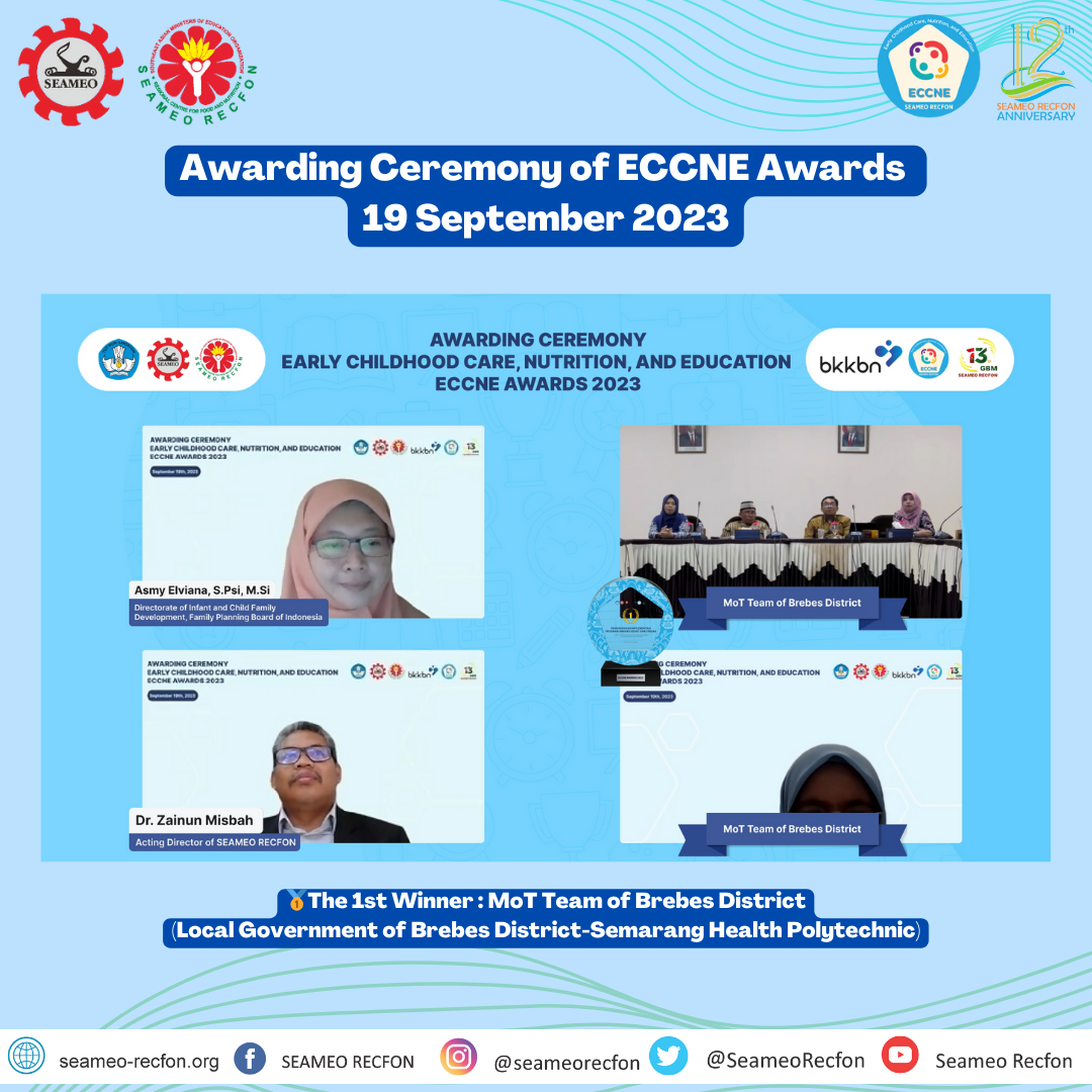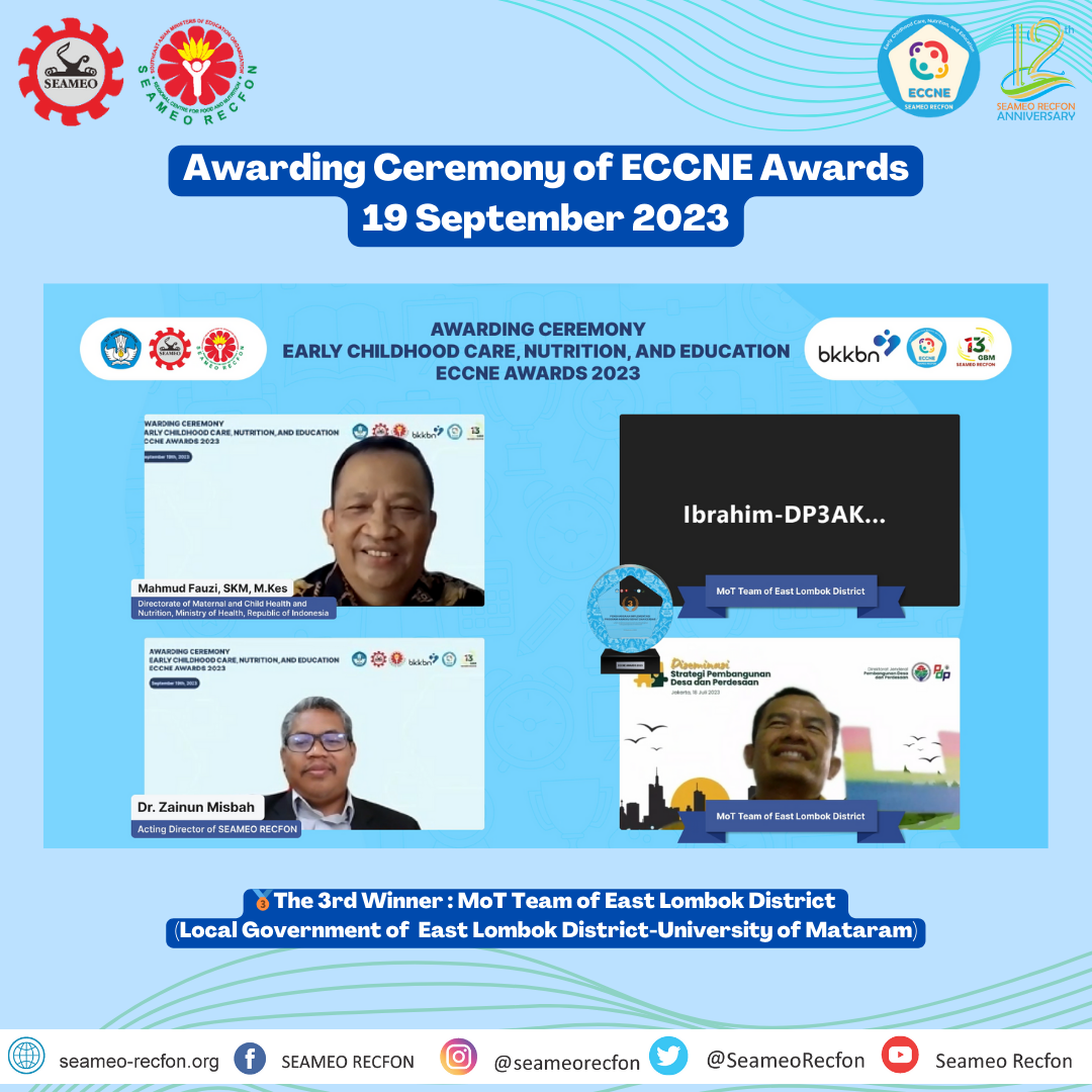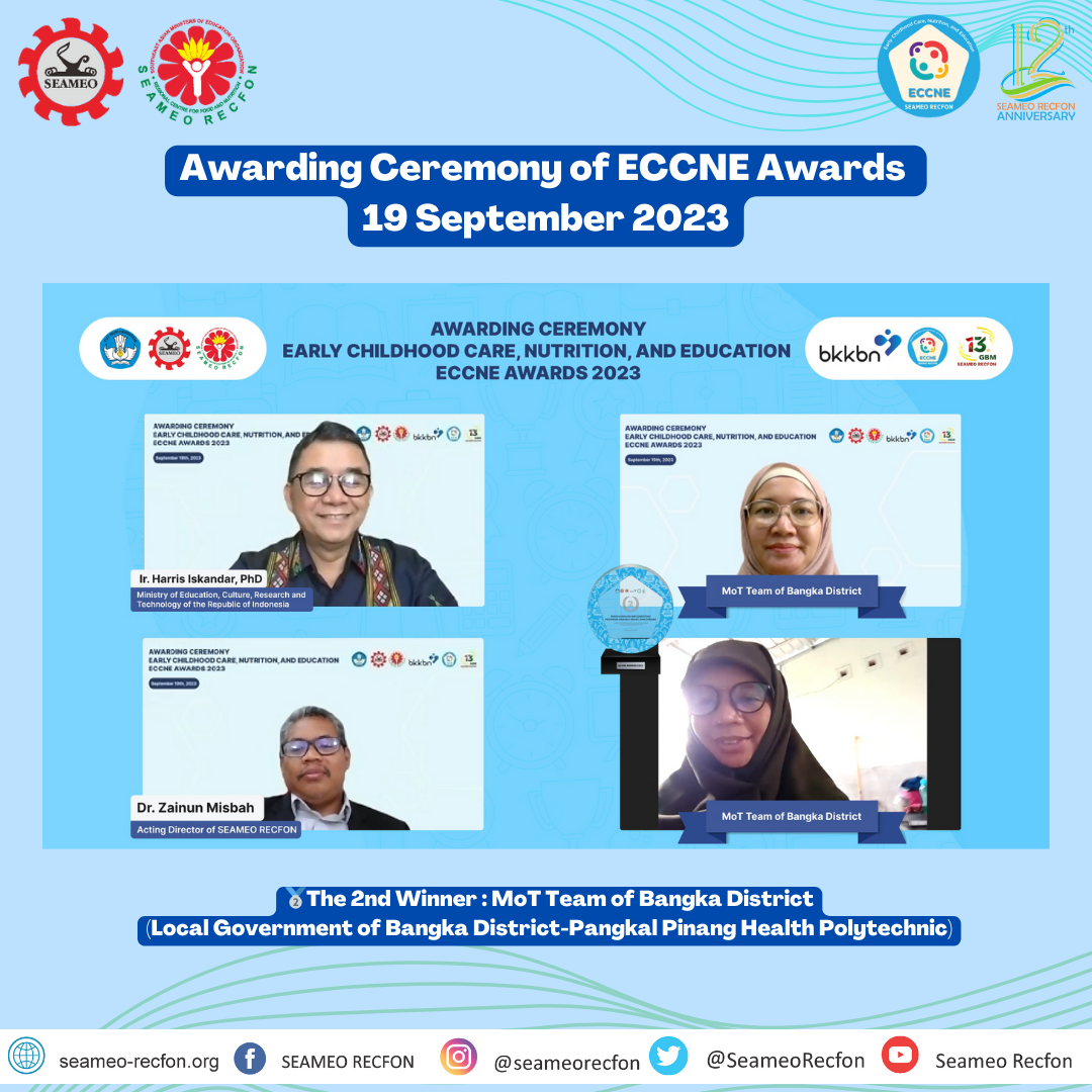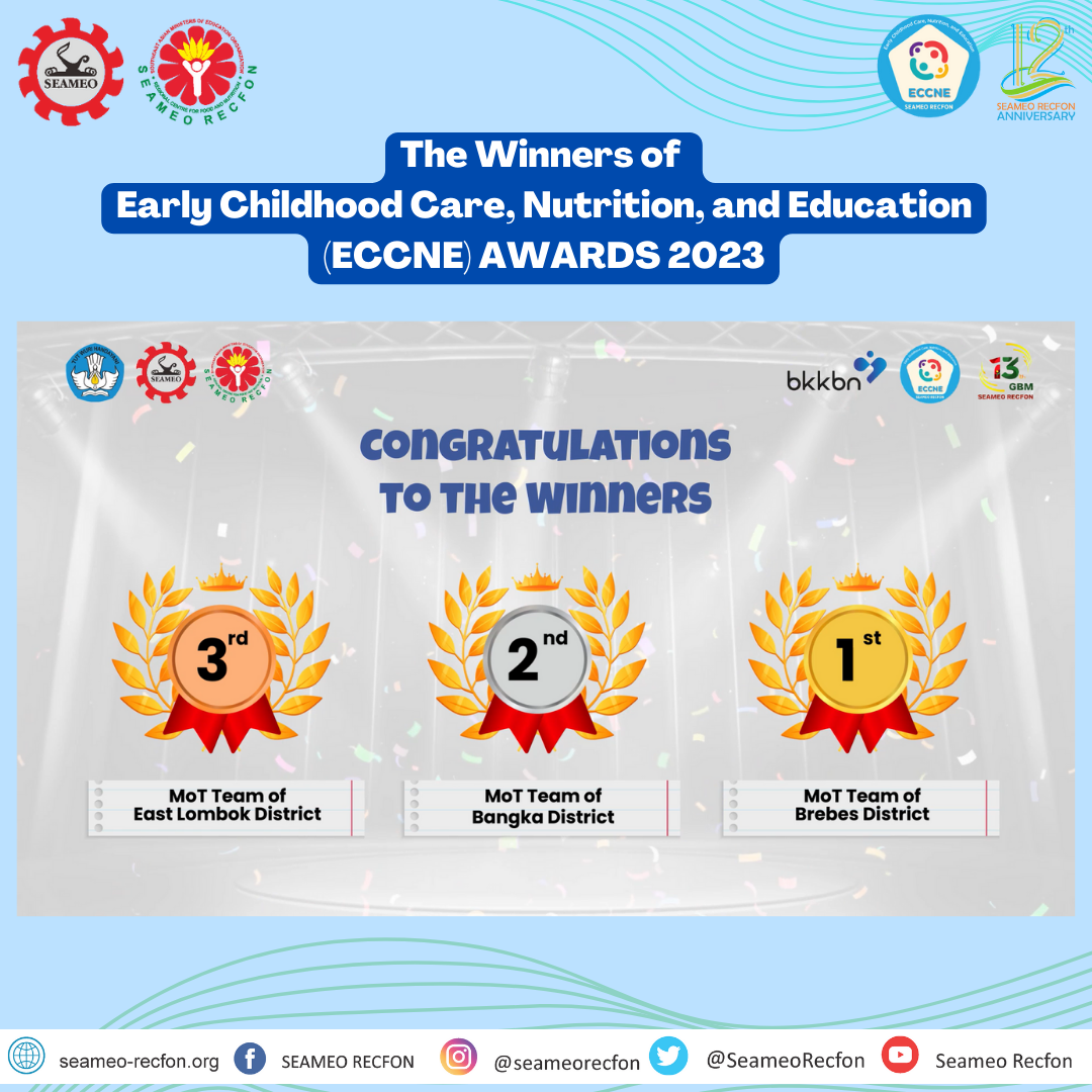 We would like to congratulate the winners of this year’s ECCNE Awards which has been announced in Awarding Ceremony of ECCNE Awards along with the opening ceremony of The 13th SEAMEO RECFON Governing Board Meeting (GBM) on 19 September 2023🥳