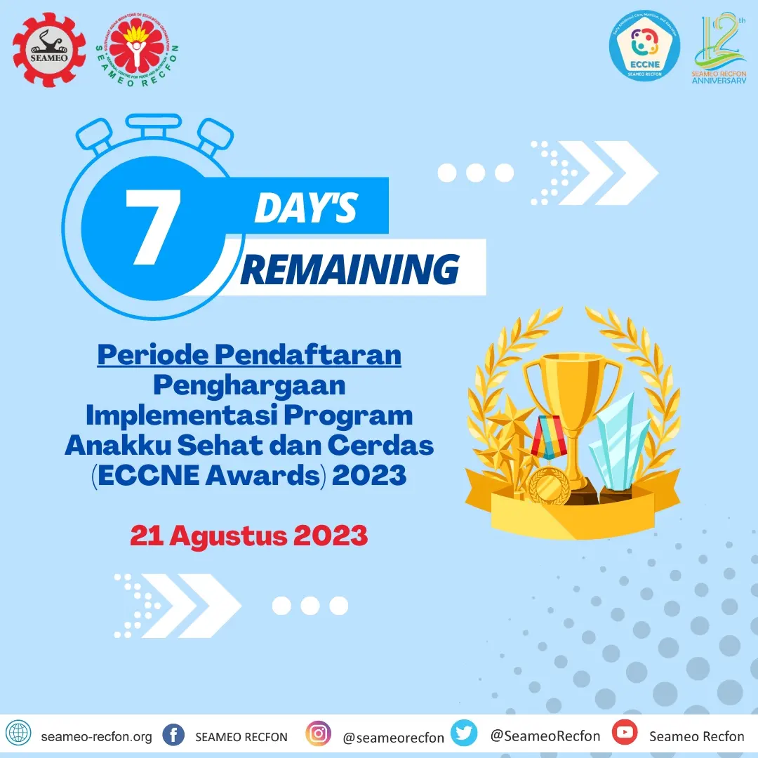 Early Childhood Care and Nutrition (ECCNE) program atau yang lebih dikenal dengan program ‘Anakku Sehat dan Cerdas’ adalah program yang diinisiasi oleh SEAMEO Regional Centre for Food and Nutrition (RECFON) pada tahun 2017. Program ini bertujuan untuk memberikan model implementasi komponen esensial yang terintegrasi untuk mengoptimalkan tumbuh kembang anak. Komponen-komponen ini termasuk lingkungan yang mendukung, pengasuhan, pengasuhan dan pendidikan, kesehatan dan gizi, serta kebijakan dan partisipasi multi-sektor.