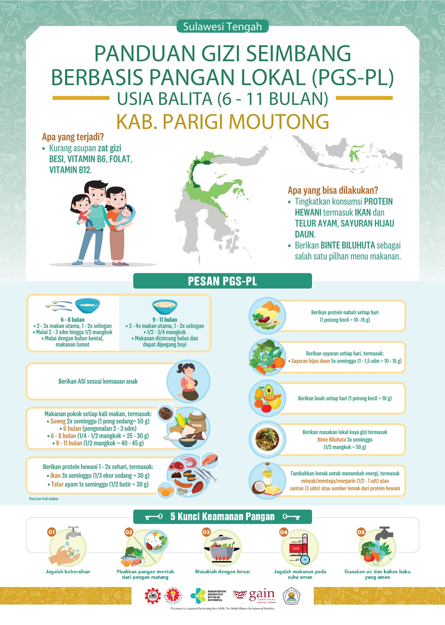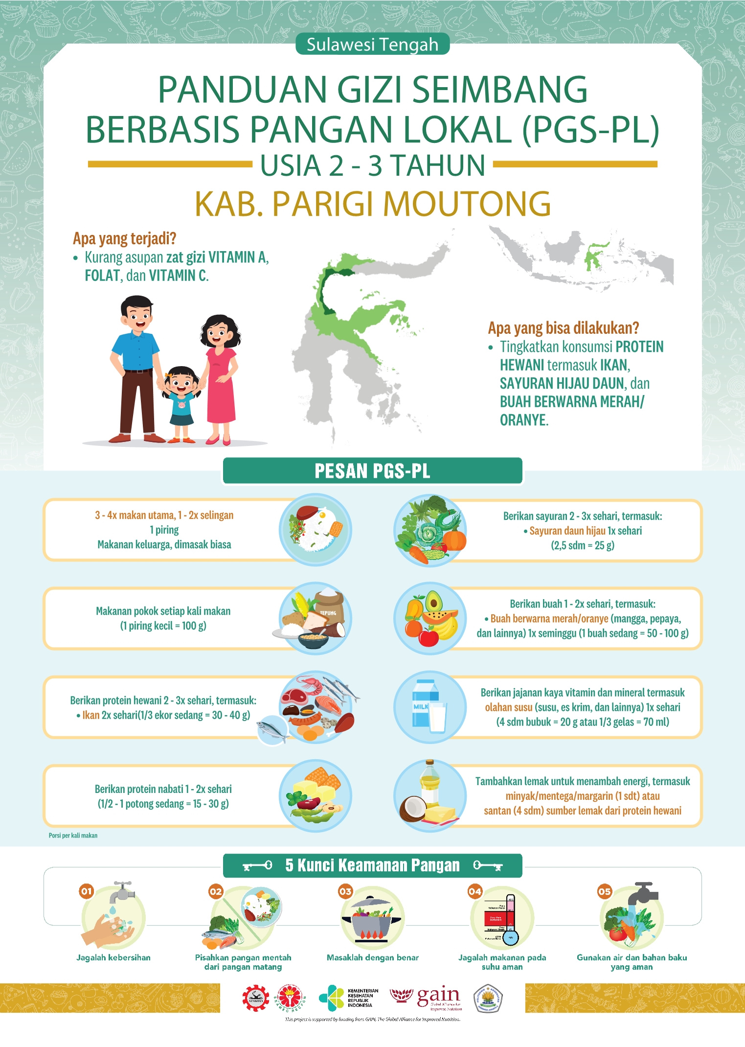 Kabupaten Parigi Moutong berada di provinsi Sulawesi Tengah. Ibu kota kabupaten ini terletak di Parigi. Kabupaten Parigi Moutong melingkupi sebagian besar daerah pantai timur Sulawesi Tengah dan Teluk Tomini. Resep lokalnya berbahan dasar jagung dan ikan yang disebut Binte Bilihuta. Penasaran bagaimana cara membuatnya? Silahkan unduh resepnya!