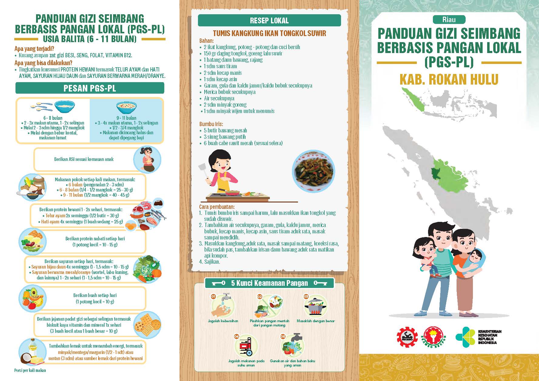 Kabupaten Rokan Hulu terletak di Provinsi Riau dengan luas wilayah 7.462,18 Km2. Sektor pertanian memberikan kontribusi besar bagi pertumbuhan ekonomi daerah ini seperti tanaman pangan, hortikultura, perkebunan, perikanan, dan peternakan. Resep lokal di sini yang perlu dicoba adalah Tumis Kangkung Ikan Tongkol Suwir. Simple tapi menarik, kan?